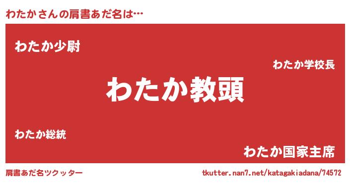 | ヒーロー風カッコイイあだ名 | 『ネオワタカ』『ウルトラわたかマン』 |