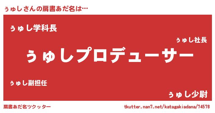 | ヒーロー風カッコイイあだ名 | 『慈愛の使者ぅゅし』『スーパーゥュシ』 |