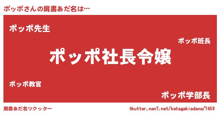 | 女子向けラノベタイトル風あだ名 | 『ポッポ姫と円卓の騎士』 |