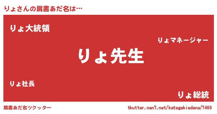 | 男性向けラノベタイトル風あだ名 | 『りょという概念が存在しない退屈な世界 』 |