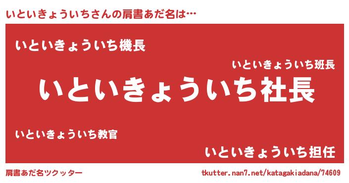 | 男性向けラノベタイトル風あだ名 | 『いといきょういちの憂鬱』 |