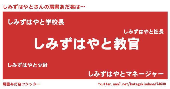 | 男性向けラノベタイトル風あだ名 | 『この素晴らしい世界にしみずはやとを!』 |