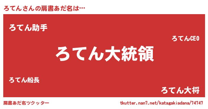 | 女子向けラノベタイトル風あだ名 | 『ろてんの婚約者』『ろてん恋絵巻』 |