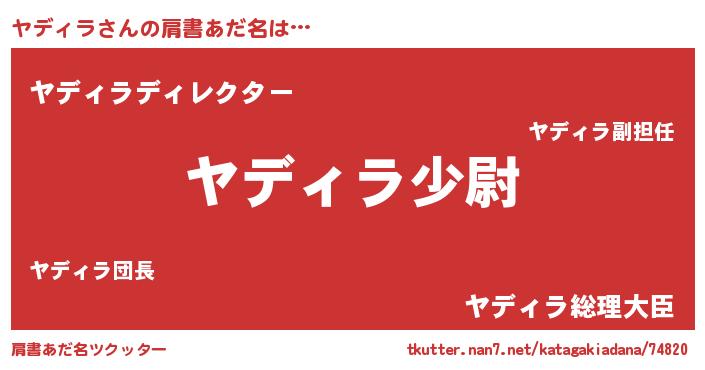 | 男性向けラノベタイトル風あだ名 | 『転生したらヤディラだった件』 |