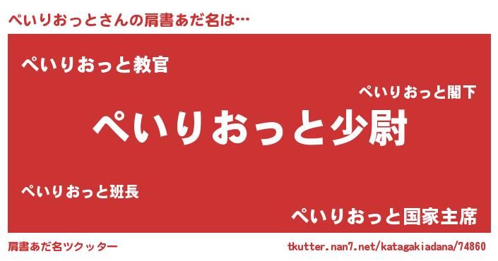 | 胡散臭い通販商品みたいなあだ名 | 『あなたにだけ特別に提供する100年もののヴィンテージワイン…その名も「ぺいりおっと」』 |