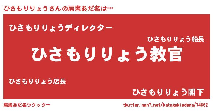 | 男性向けラノベタイトル風あだ名 | 『この素晴らしい世界にひさもりりょうを!』 |