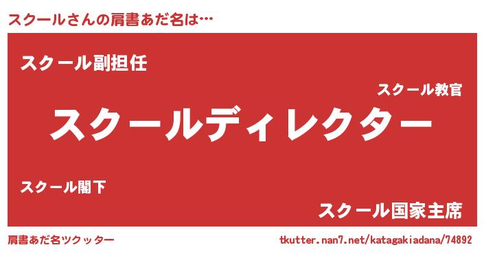 | 男性向けラノベタイトル風あだ名 | 『スクールに滅ぼされるだけの簡単なお仕事です』 |