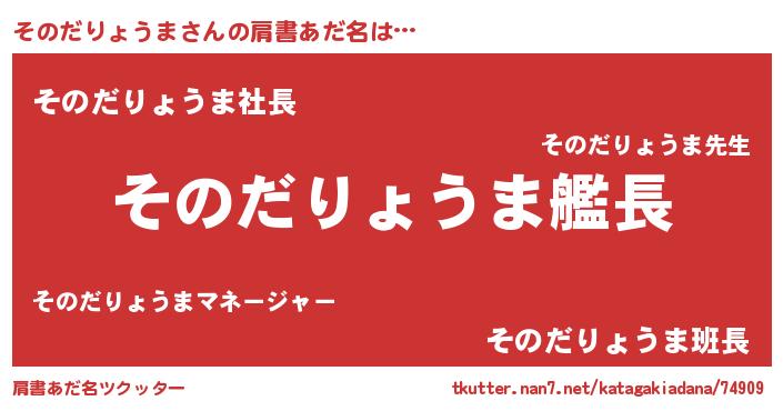 | 男性向けラノベタイトル風あだ名 | 『うちのそのだりょうまが世界を掌握している!』 |