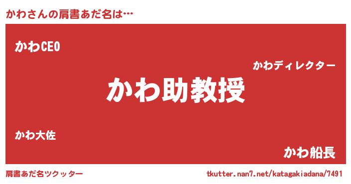 | 男性向けラノベタイトル風あだ名 | 『ノーゲーム・ノーカワ』『かわの憂鬱』 |
