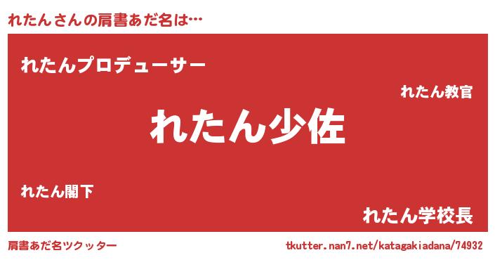 | 男性向けラノベタイトル風あだ名 | 『レタンスレイヤー』『魔弾の王とれたん』 |