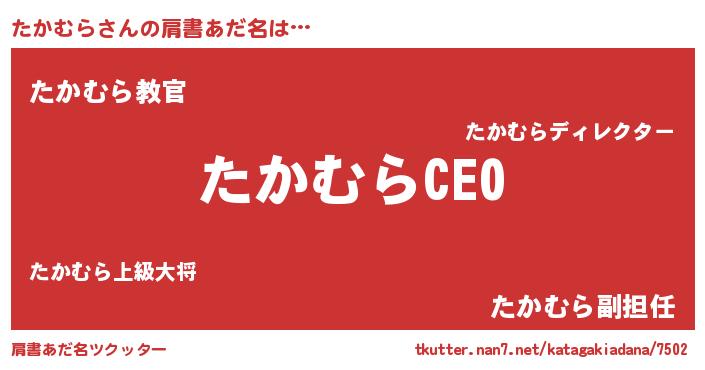 | 男性向けラノベタイトル風あだ名 | 『タカムラアートオンライン』 |