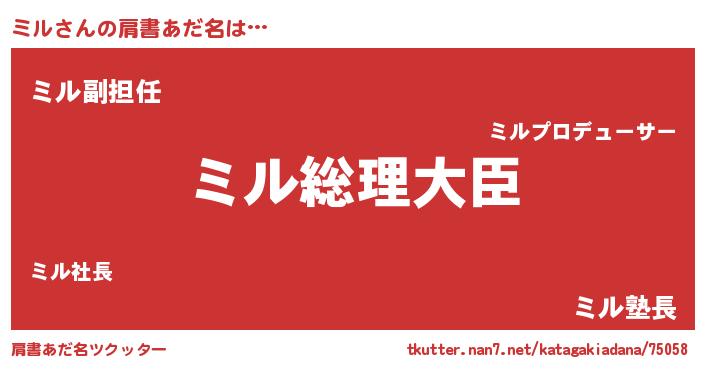 | ヘコむあだ名 | 『酢こんぶ』『ミル(笑)』『ミルっ子』 |