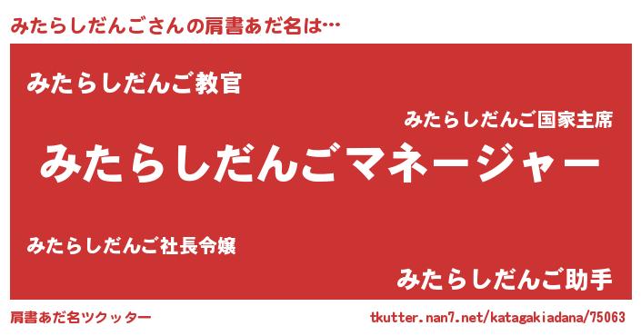| 男性向けラノベタイトル風あだ名 | 『はたらくみたらしだんごさま!』 |
