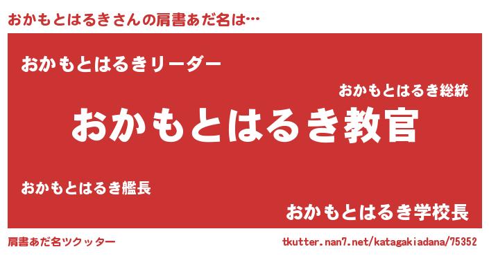 | 男性向けラノベタイトル風あだ名 | 『この素晴らしい世界におかもとはるきを!』 |