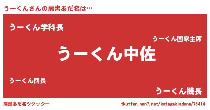 | 男性向けラノベタイトル風あだ名 | 『うーくん~年齢イコール彼女いない歴の魔法使い~』 |