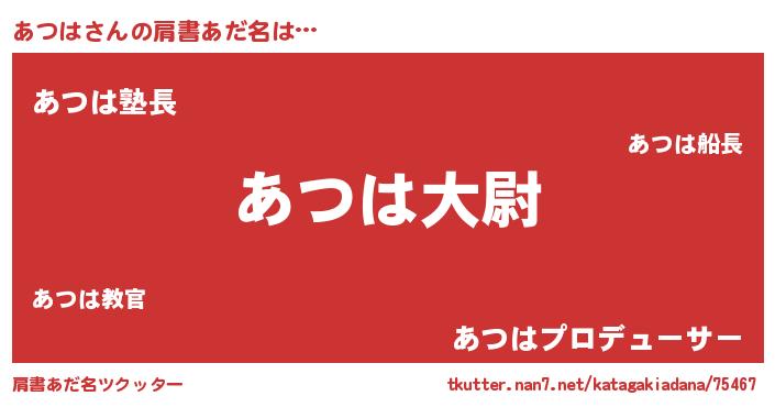 | ピコ太郎風あだ名 | 『アツ四郎』『ピコア郎』『アア太郎』 |