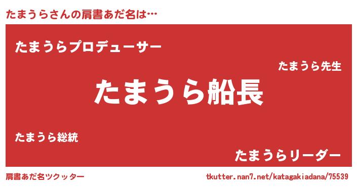 | 胡散臭い通販商品みたいなあだ名 | 『信頼と実績のサプリメント…その名も「たまうら」』 |