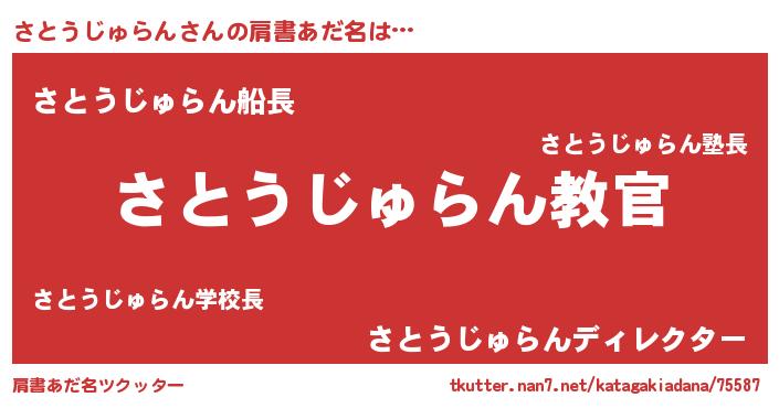 | 意味不明あだ名 | 『住所不定無職さとうじゅらん(6歳)』 |