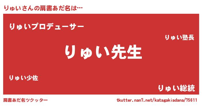 | 男性向けラノベタイトル風あだ名 | 『りゅいという概念が存在しない退屈な世界 』 |