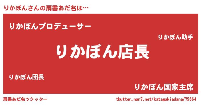 | 男性向けラノベタイトル風あだ名 | 『りかぼんの憂鬱』 |