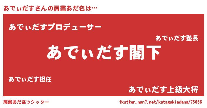 | ヘコむあだ名 | 『あでを』『あでぃだす(遠い目)』 |
