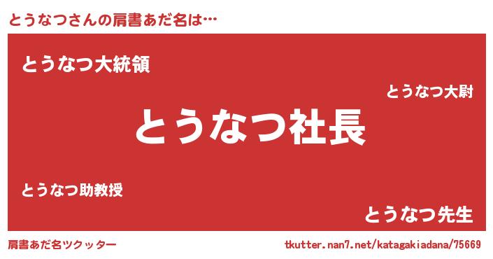 | ポケモン風あだ名 | 『トウチュウ』『トウナダネ』 |