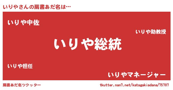 | ヘコむあだ名 | 『いりや(苦笑)』『いりにー』 |