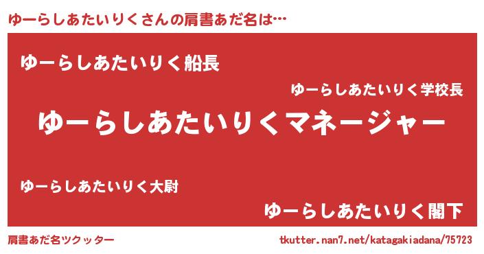 | 意味不明あだ名 | 『自称ゆーらしあたいりく』 |