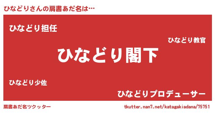 | ファンタジー風あだ名 | 『ゼヒナトゥ』『ヒナディッシュ』 |