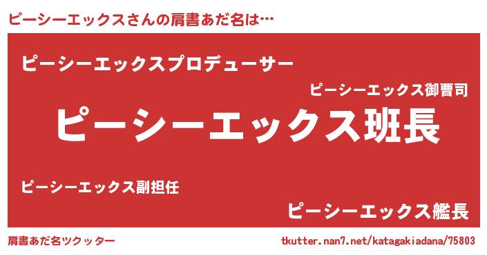 | 女子向けラノベタイトル風あだ名 | 『ピーシーエックス様がみてる』 |