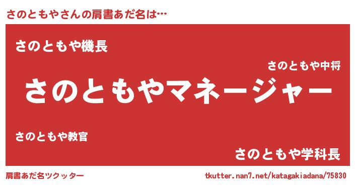 | 男性向けラノベタイトル風あだ名 | 『さのともやに滅ぼされるだけの簡単なお仕事です』 |