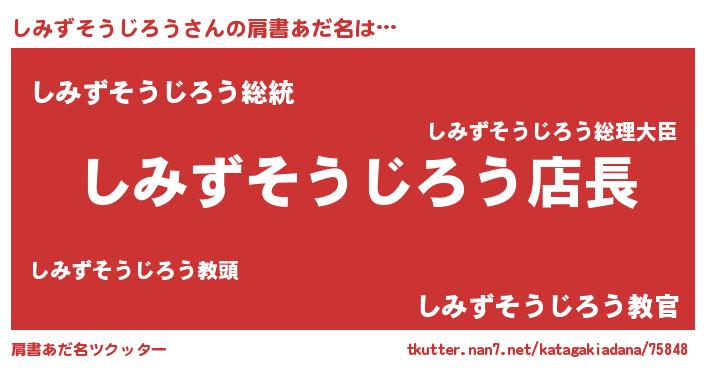 | 男性向けラノベタイトル風あだ名 | 『しみずそうじろうの憂鬱』 |