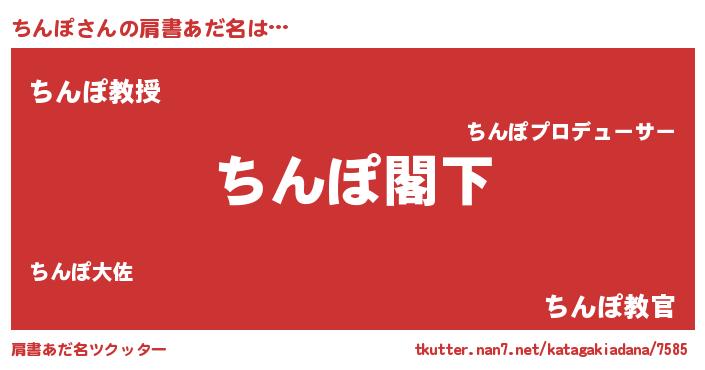 | 男性向けラノベタイトル風あだ名 | 『Re:ちんぽから始める異世界生活』 |