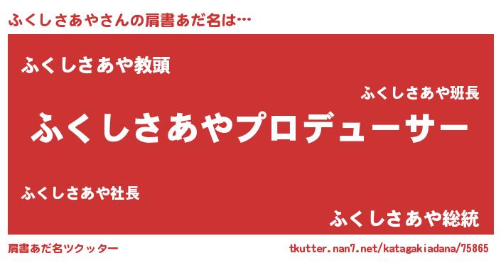 | ヘコむあだ名 | 『ふくしさあや(遠い目)』『ふく太郎』 |