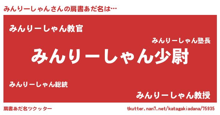 | 女子向けラノベタイトル風あだ名 | 『みんりーしゃんの玉の輿計画!』 |