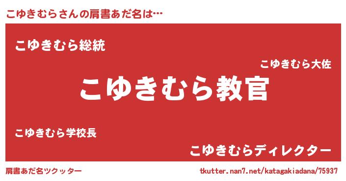 | 男性向けラノベタイトル風あだ名 | 『この素晴らしい世界にこゆきむらを!』 |
