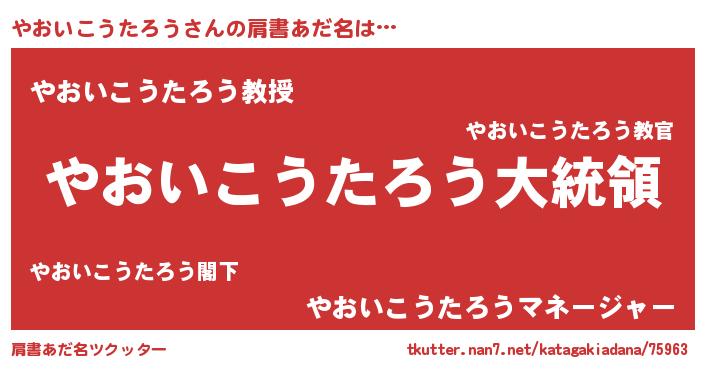 | 男性向けラノベタイトル風あだ名 | 『やはりやおいこうたろうの青春ラブコメはまちがっている 』 |