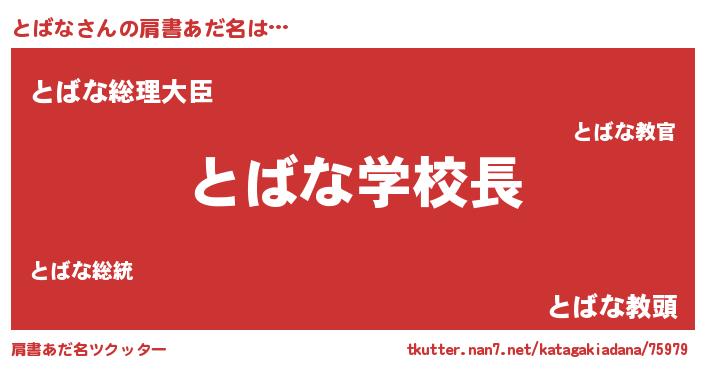 | 女子向けラノベタイトル風あだ名 | 『死神とばなの再婚』『とばなの婚約者』 |