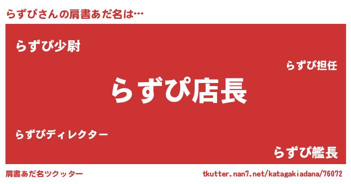 | ヘコむあだ名 | 『らずにゅー』『らずぴ(笑)』『豆乳』 |