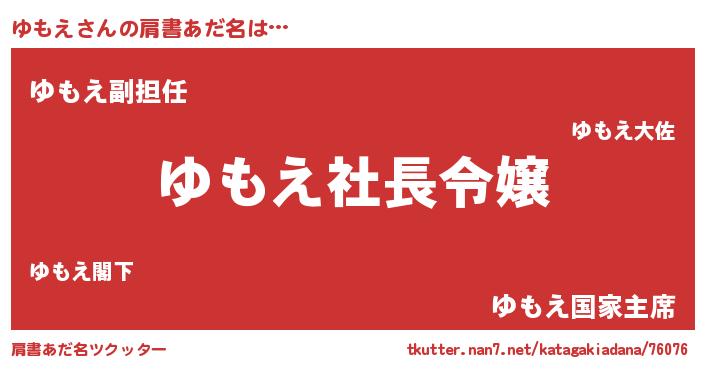 | ファンタジー風あだ名 | 『ユモフェル』『ユモディッシュ』 |