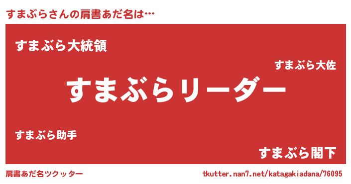 | ヒーロー風カッコイイあだ名 | 『魔戒騎士スマ』『ウルトラすまぶらマン』 |