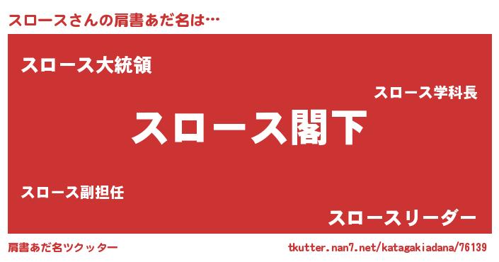 | 意味不明あだ名 | 『自称スロース』『スロースフォーエバー』 |