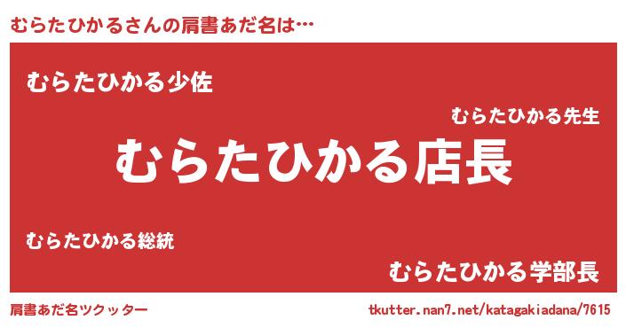| ヘコむあだ名 | 『むらにゅー』『むらたひかる(小並感)』 |