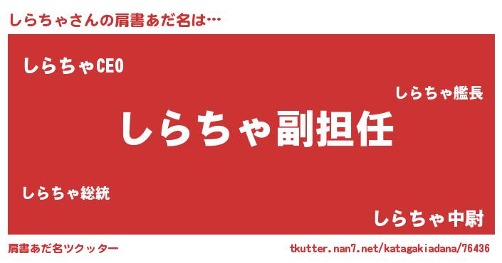| 男性向けラノベタイトル風あだ名 | 『しらちゃという概念が存在しない退屈な世界 』 |