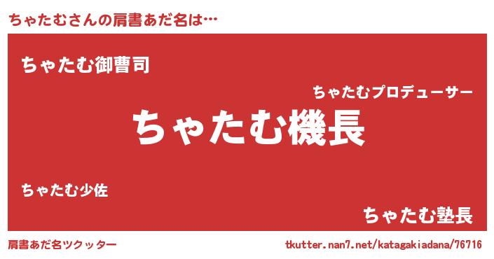 | ヘコむあだ名 | 『ちゃっふぃ~』『ちゃぷりん』 |