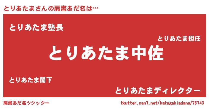 | ヒーロー風カッコイイあだ名 | 『幻影騎士トリ』『ネオトリアタマ』 |