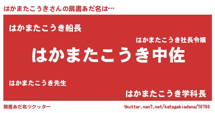 | 女子向けラノベタイトル風あだ名 | 『はかまたこうきの玉の輿計画!』 |