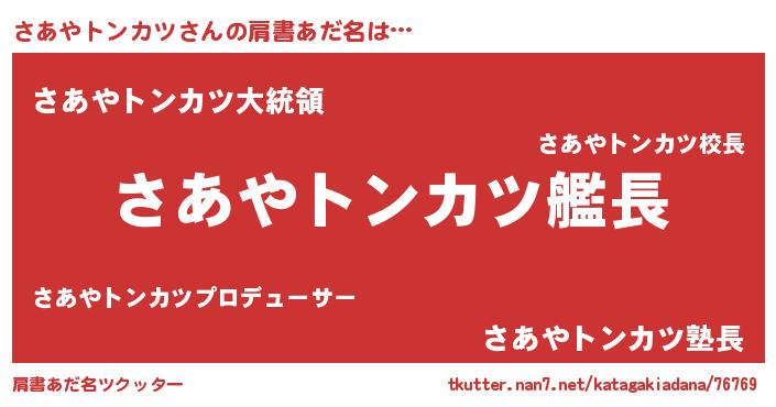 | 女子向けラノベタイトル風あだ名 | 『男装さあやトンカツの憂鬱な任務』 |