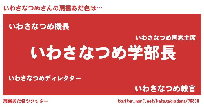 | 女子向けラノベタイトル風あだ名 | 『いわさなつめ夫妻のなれそめ』 |