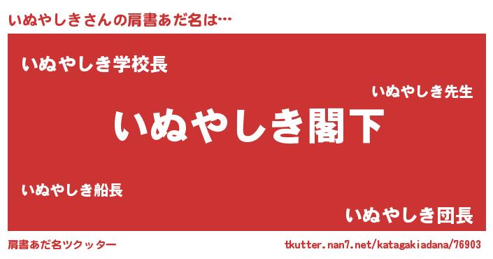 | 意味不明あだ名 | 『自称いぬやしき』『永久保存いぬやしき』 |